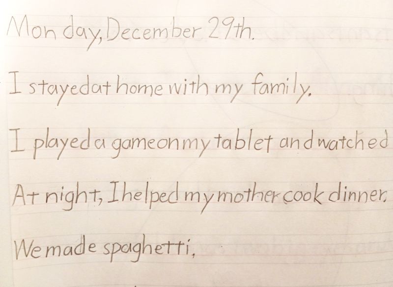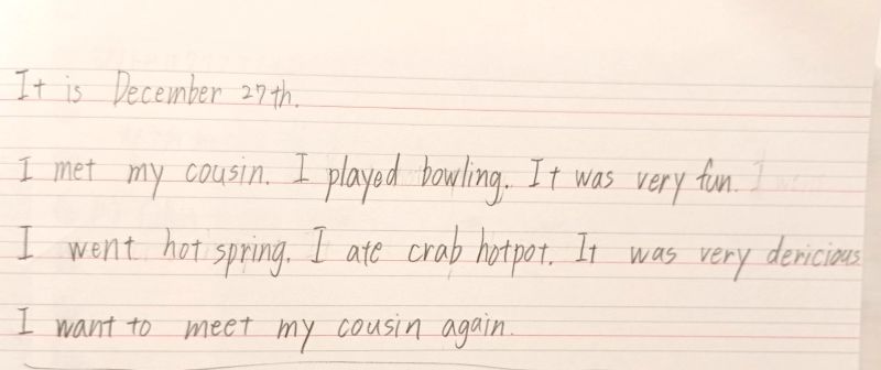 多くのクラスでは宿題として「冬休みの日記」を書いてもらいましたが、従妹と遊んだり、友達とカラオケへ行ったりと楽しい様子が伝わってきます。